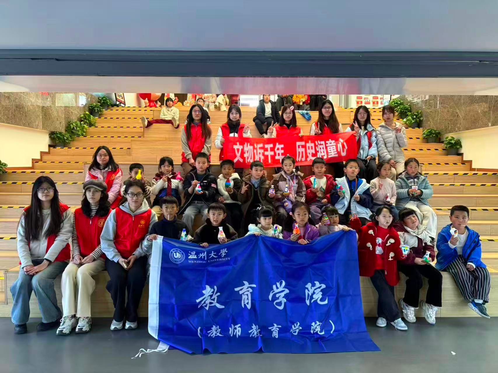 “今天不仅认识了玉琮和青铜器,还亲手画了陶瓶,太开心啦!我要把这个‘文物花瓶’带回家送给爸爸妈妈。”活动结束时,小朋友们捧着自己的创作成果,脸上洋溢着自豪的笑容。家长们也对活动给予高度认可:“这样的活动既让孩子学到了传统文化知识,又锻炼了动手能力,感谢温大志愿者们的用心付出,希望以后能多开展类似活动。”