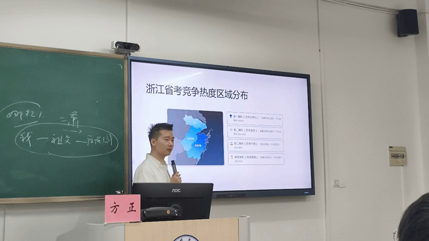 讲座中,方老师重点介绍了军队文职、烟草系统、选调生、浙江省公务员以及事业单位等五大方向。他从薪资待遇、福利升职、报考性价比等实际的方式未切入,为同学们呈现了一幅清晰的公考“全景图”。