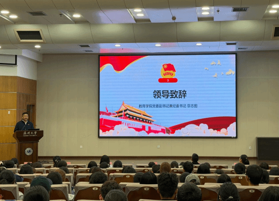 随后,章志图为开班仪式致辞。他深刻阐述了加强团学干部培训和推进“班团一体化”建设的重要意义,指出学生干部是连接学院与广大同学的关键纽带,是学院各项工作顺利推进的重要力量。章书记结合自身丰富经验,对学员们提出了三点殷切期望:一是要提高思想认识,珍惜宝贵的学习机会;二是要聚焦主责主业,不断提升服务同学的实际本领;三是要锤炼优良作风,在日常学习工作中发挥模范表率作用。他鼓励大家将培训所学转化为推动工作的强大动力,为教育学院的发展贡献青春力量。