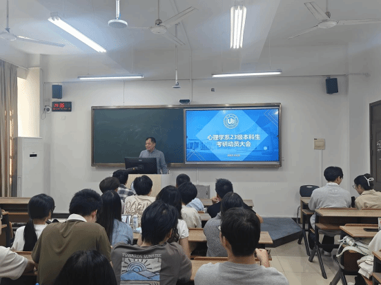 为帮助2023级本科生科学规划升学路径、明确备考方向,10月23日下午,教育学院心理学系于北校区4-415教室举办考研动员大会。学院党委副书记兼纪委书记章志图、心理学系书记杜健、教授代表于海涛、带班辅导员徐倩倩以及优秀研究生代表宋慧健、张心怡出席本次会议,围绕考研策略、心态调整与资源运用等内容展开分享,为同学们提供全面指导。