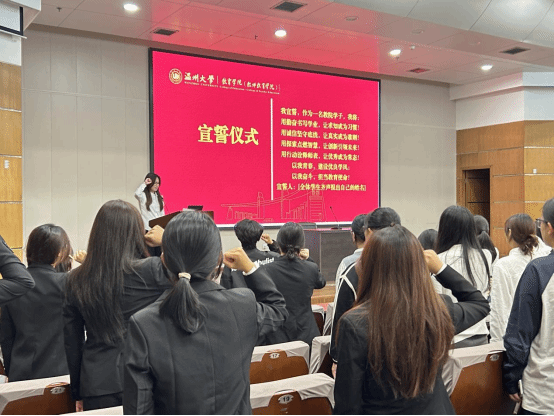 “我宣布,温州大学教育学院2025/2026学年学风建设月,正式启动!”学院副院长孙忠强的话语掷地有声,现场随即播放起激昂的背景音乐,将仪式推向高潮。学生主持人总结道:“学风建设不是‘一阵风',而是‘四季雨'——需要我们日日坚持、久久为功。” 最后,全体师生合影留念,记录下这一庄重时刻。