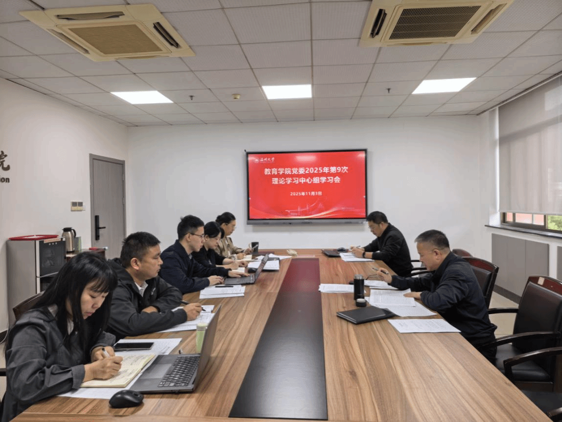 2025年11月3日,教育学院党委理论学习中心组专题传达学习习近平总书记在党的二十届四中全会上的重要讲话和会议精神,并结合学院重点工作开展交流研讨。学院党委书记张敏主持,中心组全体成员参加会议。