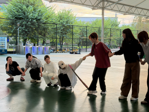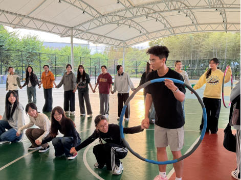 风雨篮球场内,呼啦圈传递项目压轴登场。各代表队手手相牵,呼啦圈在队员间轻盈流转——或侧身、或抬腿,队员们默契配合,笑声与掌声此起彼伏。当呼啦圈顺利传至队尾,团队的欢呼瞬间爆发——这不仅是技巧的比拼,更是“团结协作”的生动课堂。正如学院在立德树人改革中强调的“以集体活动涵养合作意识”,这场充满活力的互动,让学子在协作中体会“互助共进”的团队精神,在欢笑中厚植“互信互谅”的品德根基。