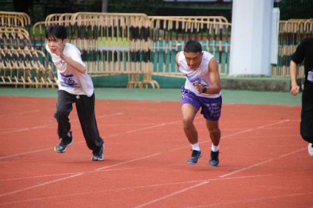 百米跑道上,发令枪响,选手如离弦之箭破风而行,肌肉绷紧、步伐铿锵,展现出爆发力的极致之美;800米赛场则是速度与耐力的双重考验,选手们调整呼吸、控制节奏,在体力极限时相互带动、彼此激励,冲刺阶段的加速脚步声与震天呐喊声交织,完美诠释了“坚持到底”的育人底色——这些赛场上的瞬间,正是学院“以体育德”的具象呈现。