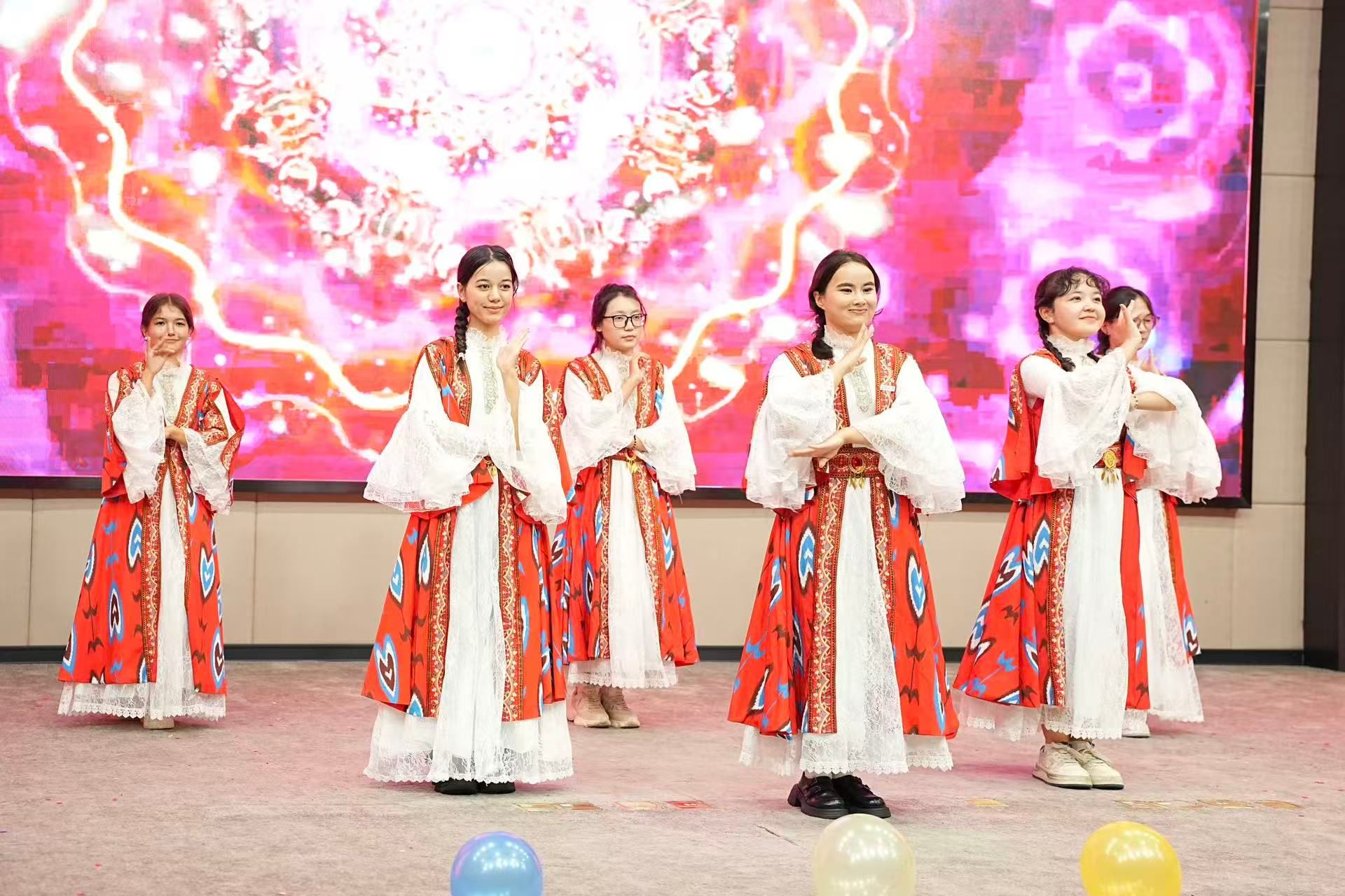 文艺汇演环节将现场气氛推向高潮。来自藏族、维吾尔族、哈萨克族等多个民族的同学带来了极具民族特色的精彩节目:藏族传统舞蹈《首饰》舞姿轻盈、韵味悠长,尽显雪域高原的神圣与华美;维吾尔族同学带来的《美丽新疆舞蹈串烧》节奏明快、热情奔放;哈萨克族舞蹈《黑走马》豪迈洒脱,气势十足。索朗措吉、旺扎赤列深情演唱《在那东山顶上》,空灵悠远的嗓音将观众带入辽阔圣洁的高原天地。中场穿插的民族知识趣味抢答环节更是“以乐传学”,让师生在轻松愉快的氛围中学习民族文化知识,加深对多元一体中华文化的理解与认同。