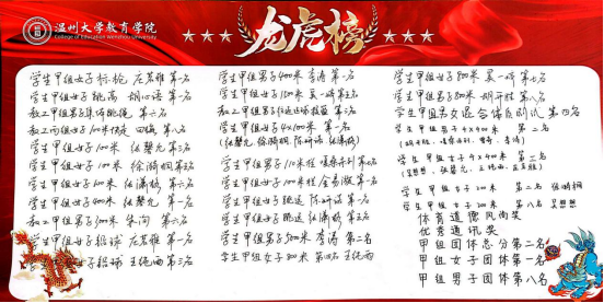 在本届运动会的赛场上,教育学院体育健儿恪守体育精神,锐意进取、勇毅争先,用拼搏换来了亮眼答卷:学院斩获学生甲组团体总分第二名、学生甲组女子团体第一名与学生甲组男子团体第八名的佳绩,同时还将体育道德风尚奖及优秀通讯组织奖收入囊中。每一项荣誉,都是对教院师生拼搏精神的最佳肯定,更是“博爱雅艺”师范品格的生动彰显。