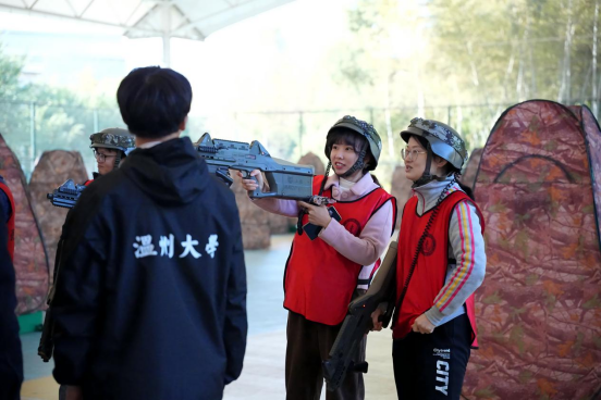 在教工项目中,老师们化身为活力运动员,而教院学子则化身最热情的“拉拉队”,为老师们呐喊助威。“100米快走”的稳健、“投壶”的专注、“真人CS”的灵活,每一个瞬间都引来学子们的阵阵欢呼,师生同心,让赛场充满温暖与力量。