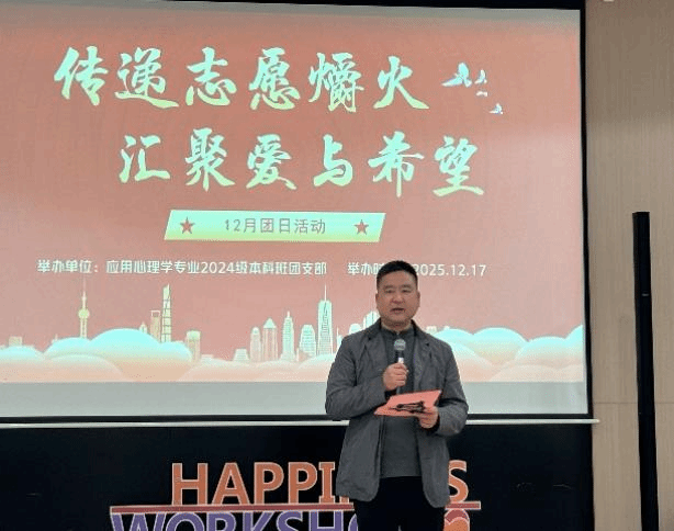 志愿微光汇星河,知心力量燃希望。24 应心团支部以志愿精神专题学习启幕,带领同学们深耕细悟志愿服务的时代内涵,筑牢思想根基。分享环节,22应心潘婧娴学姐结合亲身经历分享留学和求职干货,为同学们的职业规划拓宽思路;团支部成员聚焦“知心姐姐义工队”项目,生动宣讲依托17个合作基地为留守儿童搭建心理健康港湾的实践故事,让大家切实体悟心理学专业在志愿服务社会领域的独特价值。教育学院党委副书记兼纪委书记章志图老师、纪委委员兼团委副书记孟江龙老师莅临指导,章志图老师暖心寄语进一步激励同学们以专业为翼,勇担志愿使命。活动尾声,与会嘉宾与全体团员合影留念,定格下这场志愿精神与青春力量交融的难忘瞬间。此次活动让同学们在交流中凝聚共识,在感悟中坚定方向。未来,应心学子将继续以“知心”之名践行志愿使命,用专业知识传爱与温暖,让青春在志愿服务中绽放光彩。