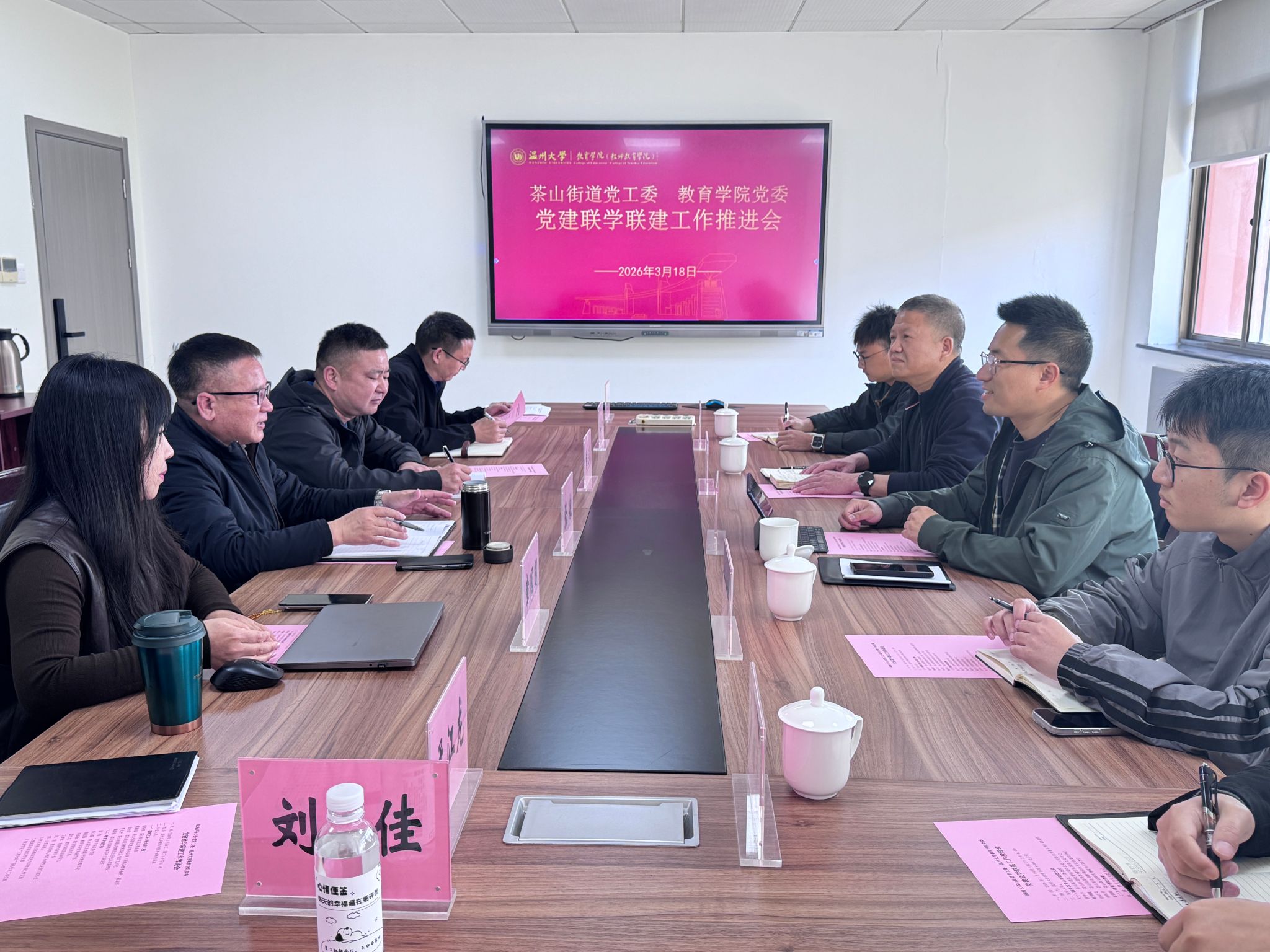 为深入开展树立和践行正确政绩观学习教育,推动教育部立德树人机制综合试点改革,3月18日上午,教育学院与茶山街道党工委联合举行党建联学联建工作推进会。茶山街道党工委委员蔡争伟,茶山街道党建统领办公室(民族宗教事务所)副主任戴鹏鑫,高教博园社区党总支书记徐云龙,副书记李继平,副主任戴银销,以及教育学院党委书记张敏,党委副书记兼纪委书记章志图,党委副书记章园园和学院相关师生代表共同参会。