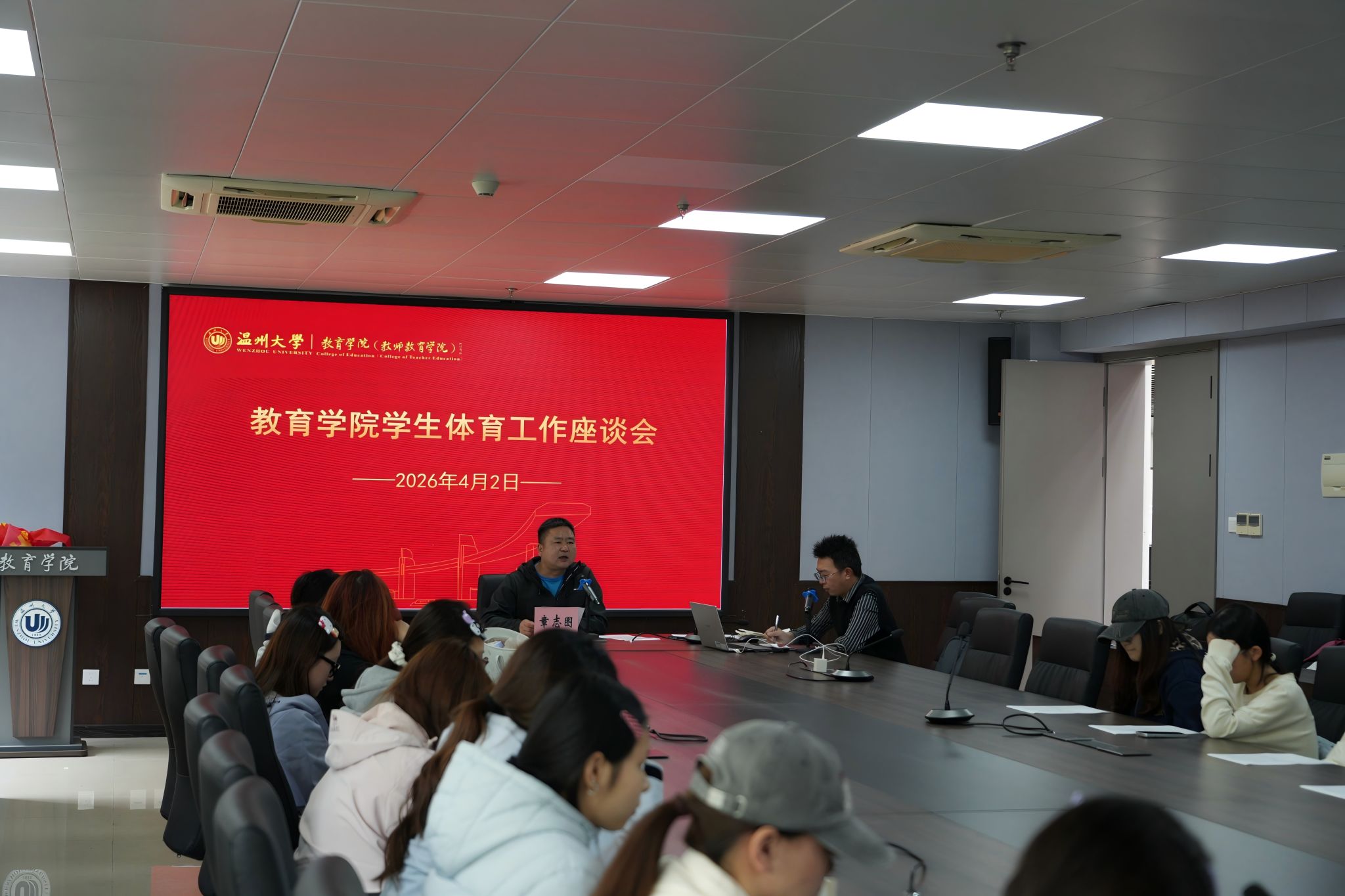 章志图书记传达“浙江全面实施大学生体质提升专项行动”精神和温州大学健康学校建设暨大学生体质提升专项行动推进会有关内容,听取学生代表对我院开展体育工作的意见建议。