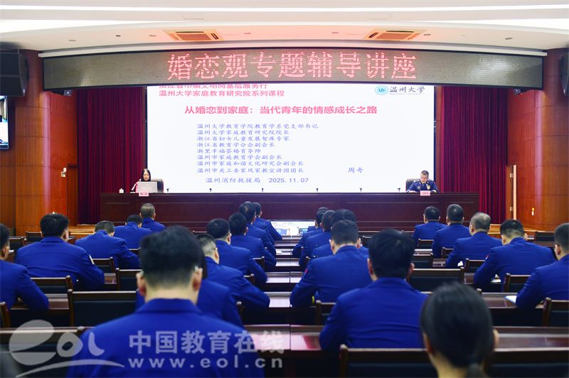 11月7日上午,温州消防救援支队近2000名消防救援人员通过“线上+线下”的形式,共同参与了由温州大学教育学院教育学系党支部书记周奇教授主讲的《从婚恋到家庭:当代青年的情感成长之路》专题讲座。