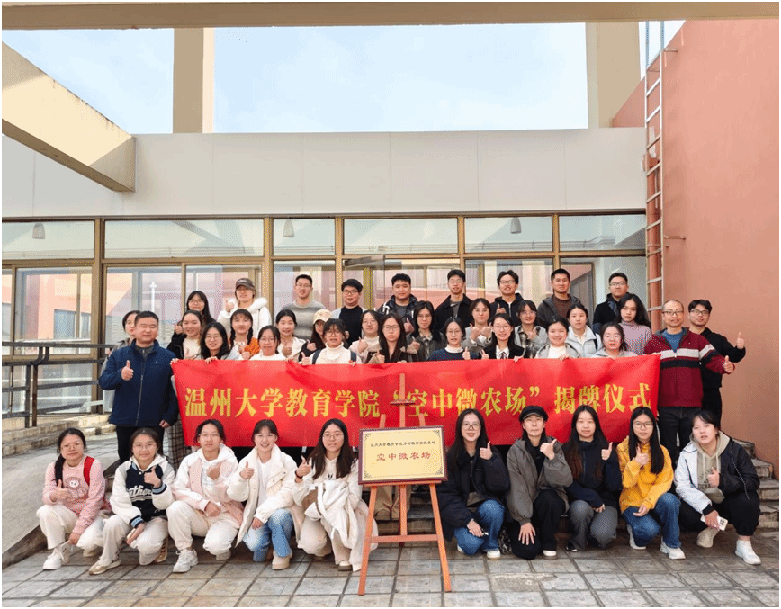近日,温州大学教育学院“空中微农场”劳动教育实践基地揭牌成立。