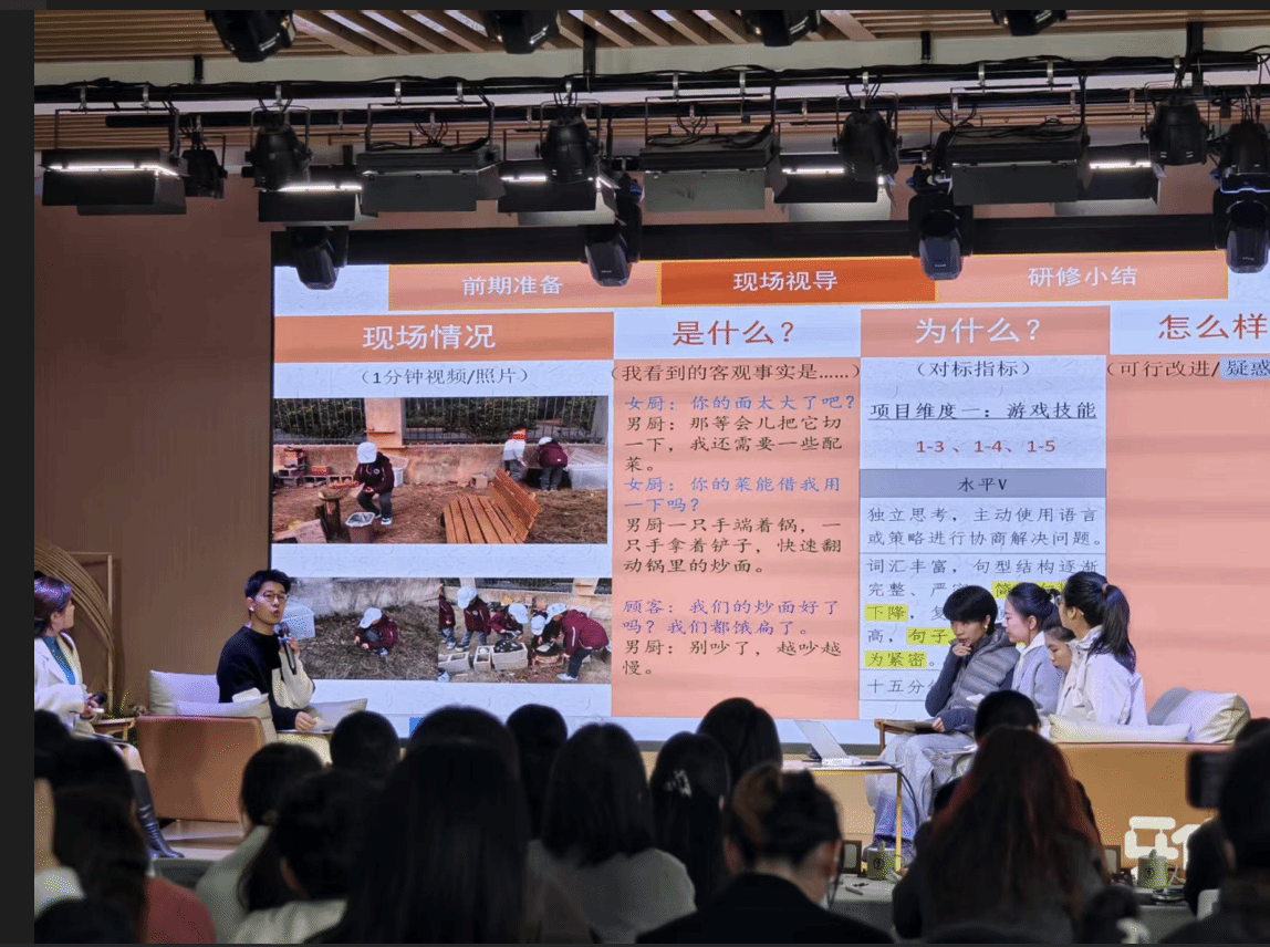 2024年9月,婺城区教育局与温州大学达成战略合作,以《浙江省学前教育发展“十四五”行动计划》为指导,构建“需求诊断—工具研发—实践迭代”合作框架。针对7所城乡教共体园所,温大团队研发“园本课程自评系统”“幼儿行为观察工具”等专业工具包,推动园所管理从经验导向转向证据导向;同时建立“高校—政府—幼儿园”(GUS模式)月度联席研讨会制度,通过每月入园指导与云端教研联动,形成“诊断—研讨—优化—反馈”闭环,实现理论与实践深度融合。