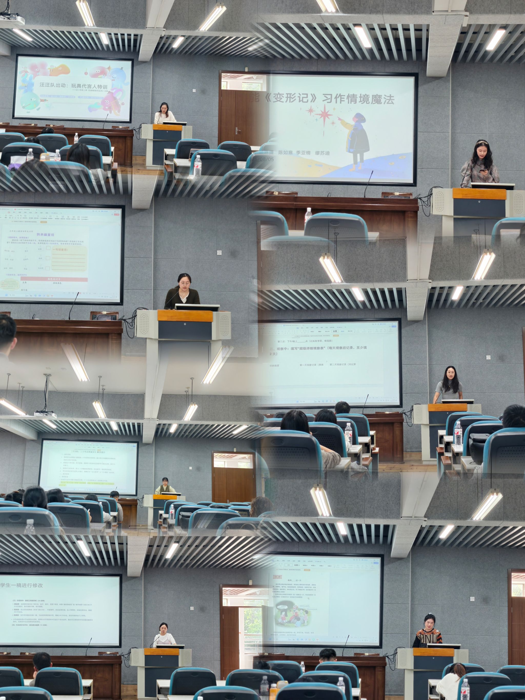 下午的课程中,黄玉晓老师以《学习任务群市域下小学生创意表达的设计与实施》为题展开分享,为在场教育工作者带来全新教学思路与灵感。黄老师通过一个个鲜活生动的案例,从童话故事、科学观察到实践活动,引导我们深入理解语文教育中的真善美、自尊与勇气等核心价值。