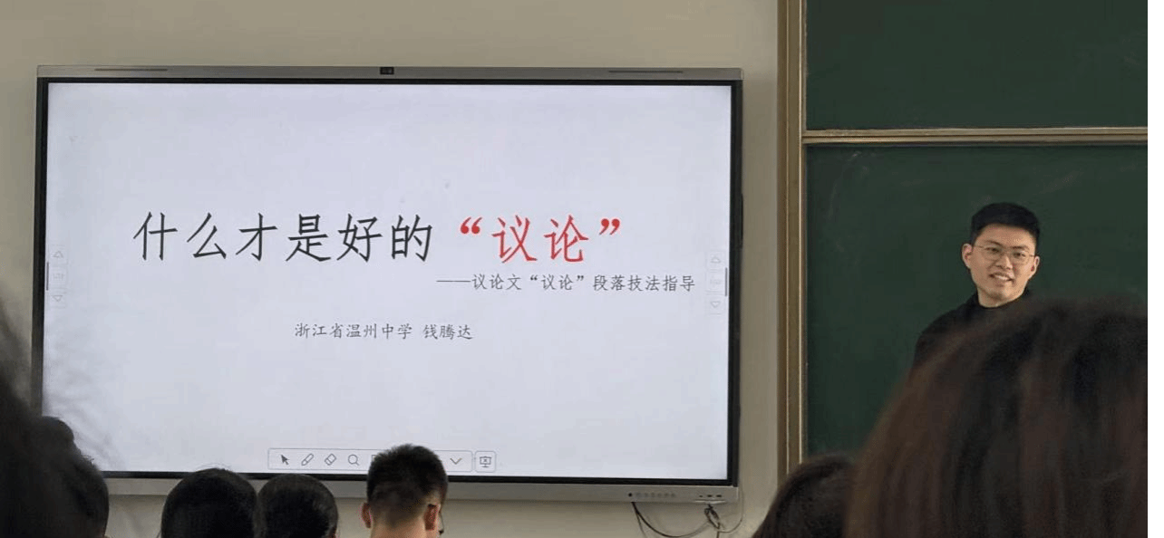 26日上午,研讨活动在扎实的课例观摩中拉开帷幕。温州中学钱腾达展示了课例《什么是好的“议论”——议论文段落技法指导》,这节课聚焦议论段三要素,先构建量化评价标准——论点需清晰明确,论据要简洁贴合,论证需衔接二者。随后给出实操优化方法。最后布置作文议论段修改任务,强调方法可灵活变通,核心是满足三要素统一要求。