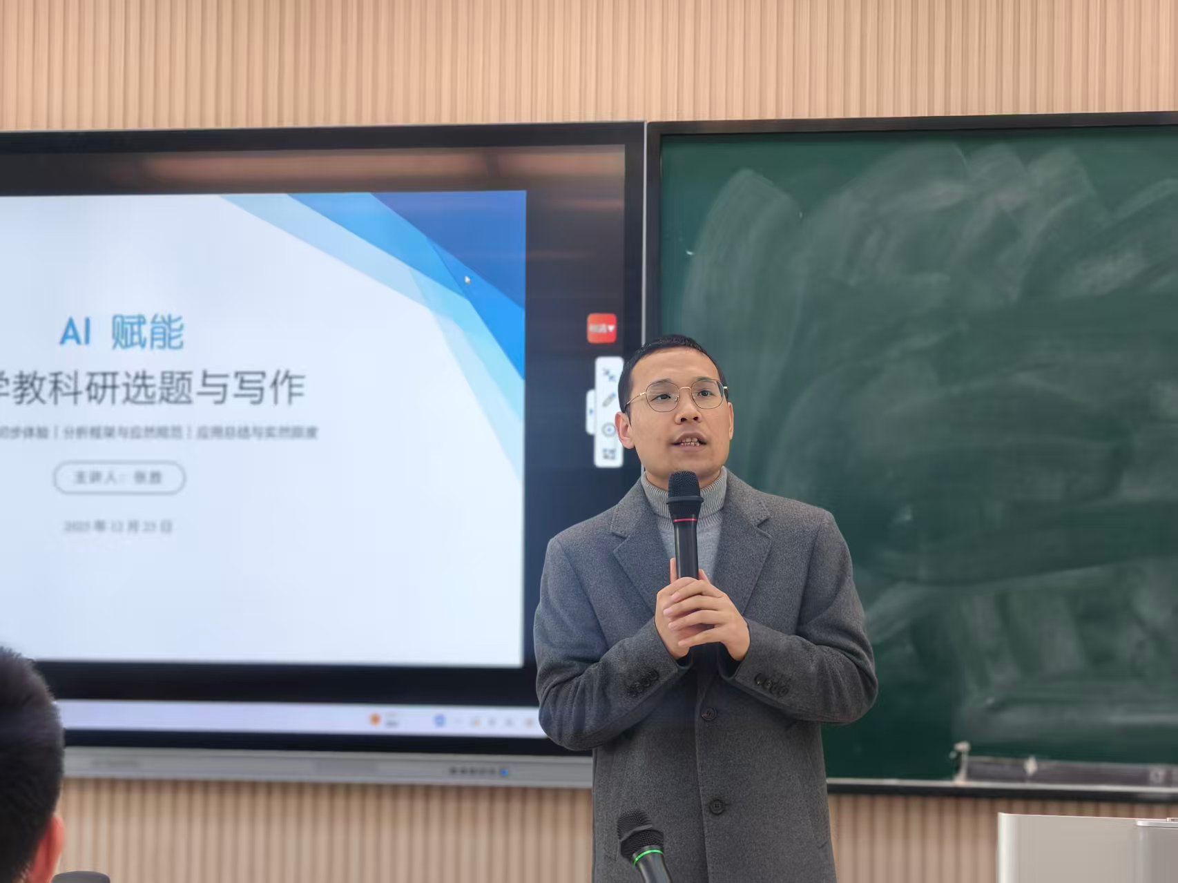 12月23日可谓是“AI知识大放送”的一天!上午,刘军副教授带来的专题讲座《AI赋能数学教学:学科精准提示词设计》让大家第一次系统性地学习如何与AI“聪明对话”。“原来提问也有这么多门道!”老师们边记笔记边感叹,仿佛发现了新大陆。