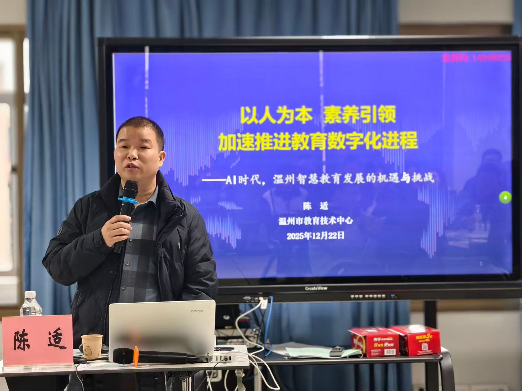 来自温州市教育技术中心陈适副主任的分享,为这场AI培训定下了温暖的基调。他提醒我们:技术再智能,教育的核心始终是“人”。AI不是冷冰冰的工具,而是老师们的“超级备课搭子”、学生们的“耐心学习伙伴”。在AI带来效率与创新的同时,我们更要守护教育中最珍贵的部分——师生的互动、思维的碰撞、成长的温度。