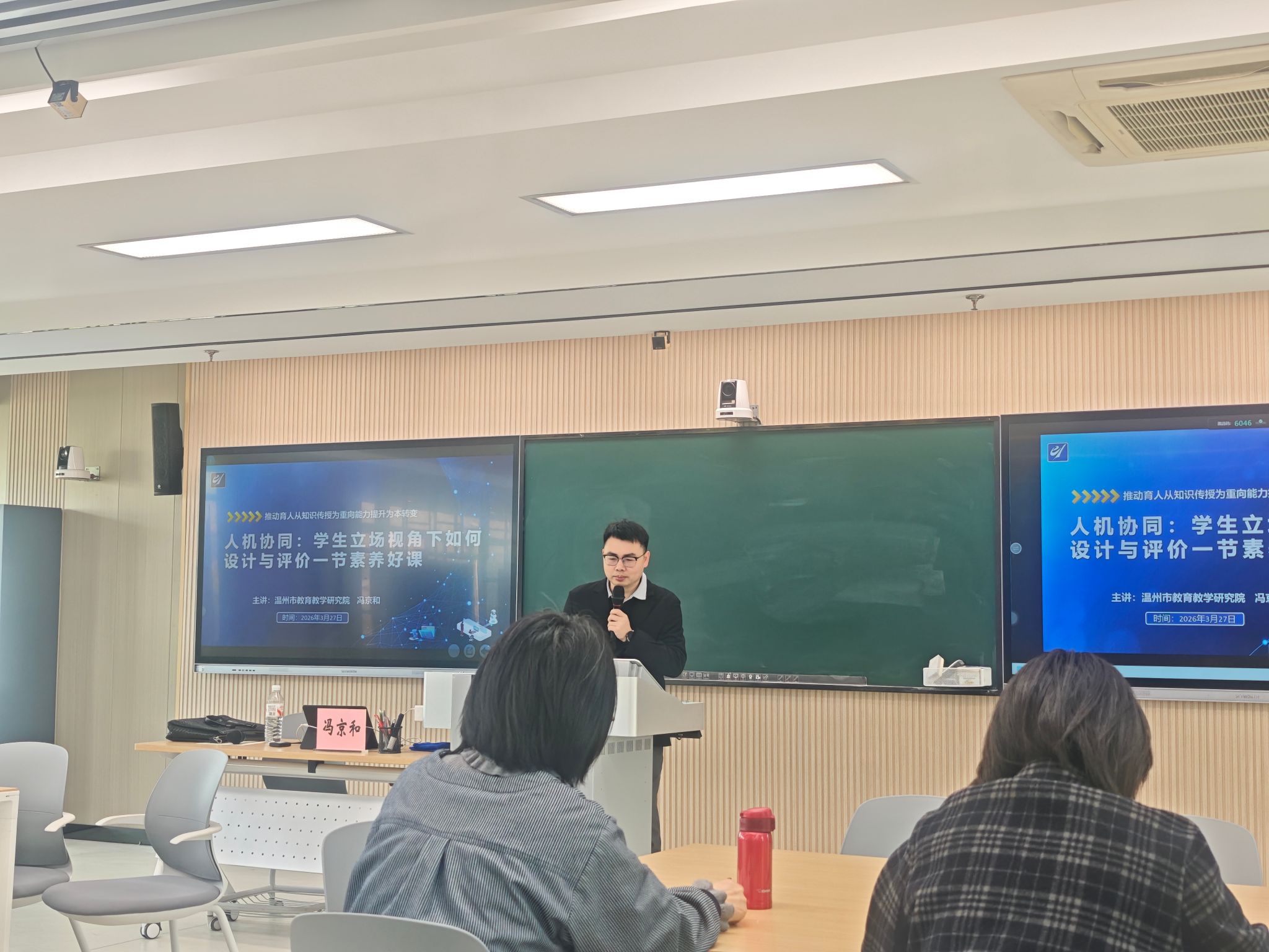 下午由温州市信息科技教研员冯京和作专题培训,聚焦人工智能赋能教育的本质与实践路径。他结合政策指出,AI赋能教育应指向学生个性化学习,推动人机协同、知识传授向能力提升转变,构建智能化、情景式学习模式;在课程育人上,要探索新技术背景下学习环境与方式的变革,注重创新精神、实践能力及自主学习、合作交流等多元素养的培养。教师角色需实现双核素养(数字素养与专业素养并驱)、从知识传授转向能力培养、从单一教学者拓展为多角色协作者。实践层面,他提出“我的AI助手”三阶策略——初级利用大模型优化备课,中级应用智能体重构学习场景,高级通过数智化诊课改进教学,并强调以真实情境驱动、数字资源支持自主学习、合作实践与及时评价、知识迁移与学科思维辨析相结合的方式上好素养课,为人工智能深度融入教育教学提供了系统指引。