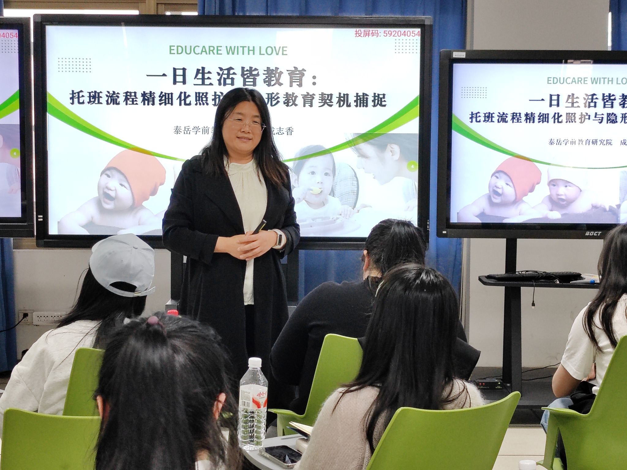当天下午,山东泰岳教育总监成志香教授围绕《一日生活皆教育:托班流程精细化照护与隐性教育契机捕捉》展开分享。培训从托育政策趋势、婴幼儿身心发展规律入手,明确区分0-3岁托育与3-6岁学前教育的核心差异。成教授结合埃里克森人格发展理论,指出托班幼儿以感知运动探索为主,建议教师结合家庭作息与园所资源,制定稳定且灵活的一日流程,让幼儿在可预测的节奏中获得安全感,实现照护与教育的自然融合。
