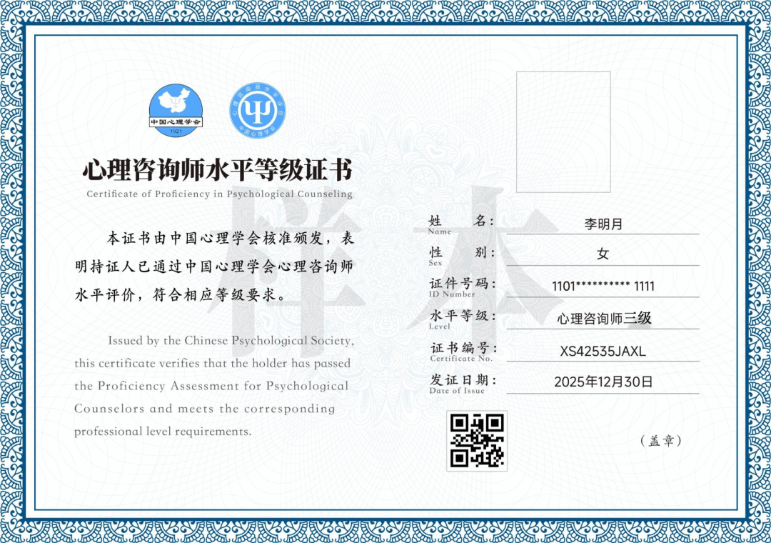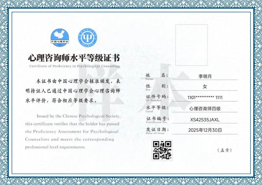 中国心理学会与温州大学双证书,进入心理咨询师水平评价工作综合服务系统(https://sppj.psysoc.org.cn)查询证书信息。未完成学习或未通过考核者仅获得已参加课程的学习证明。